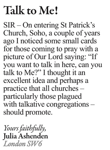 Prayers, please..... For Gordon Clark (happily, now home), Rosemary and their family. Mary & George Meyern, George Norton, Christine & Eugene, Maria & Family, Anne Mitra, Mary & Frank Elliott, Madeleine and her husband and two Choir members' special intentions. Also remember Ken's mother Patsy, Jeannette's mother, Hazel, Andrew's mother, Josie and Carole's husband Mike in your prayers. Talk to Me! What a wonderful idea (Catholic Herald):